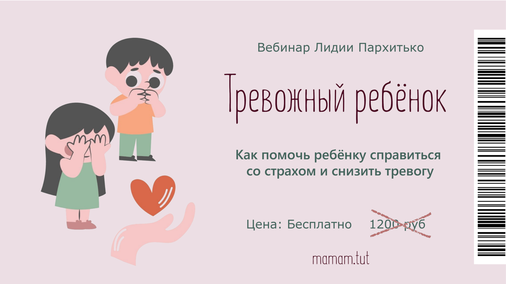 | | | | | 20 апреля в 14.00 по мск пройдёт вебинар на тему: | | «Тревожный ребёнок. Как помочь ребёнку справиться со страхом и снизить тревогу». | | | | С какого-то момента родителей начинает беспокоить поведение ребёнка.